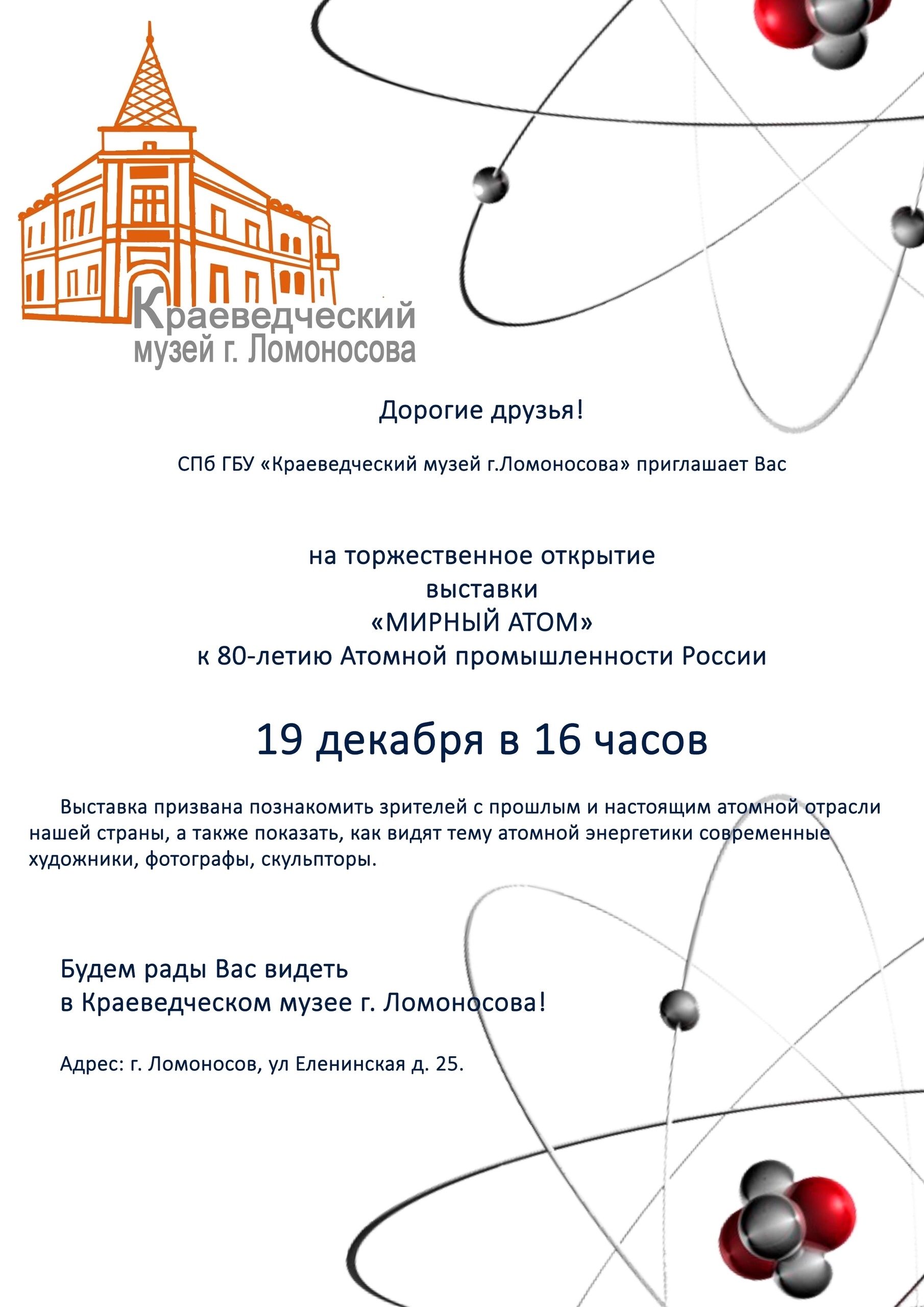 В краеведческом музее г. Ломоносова (ул. Еленинская, 25) начала работу выставка «Мирный атом».