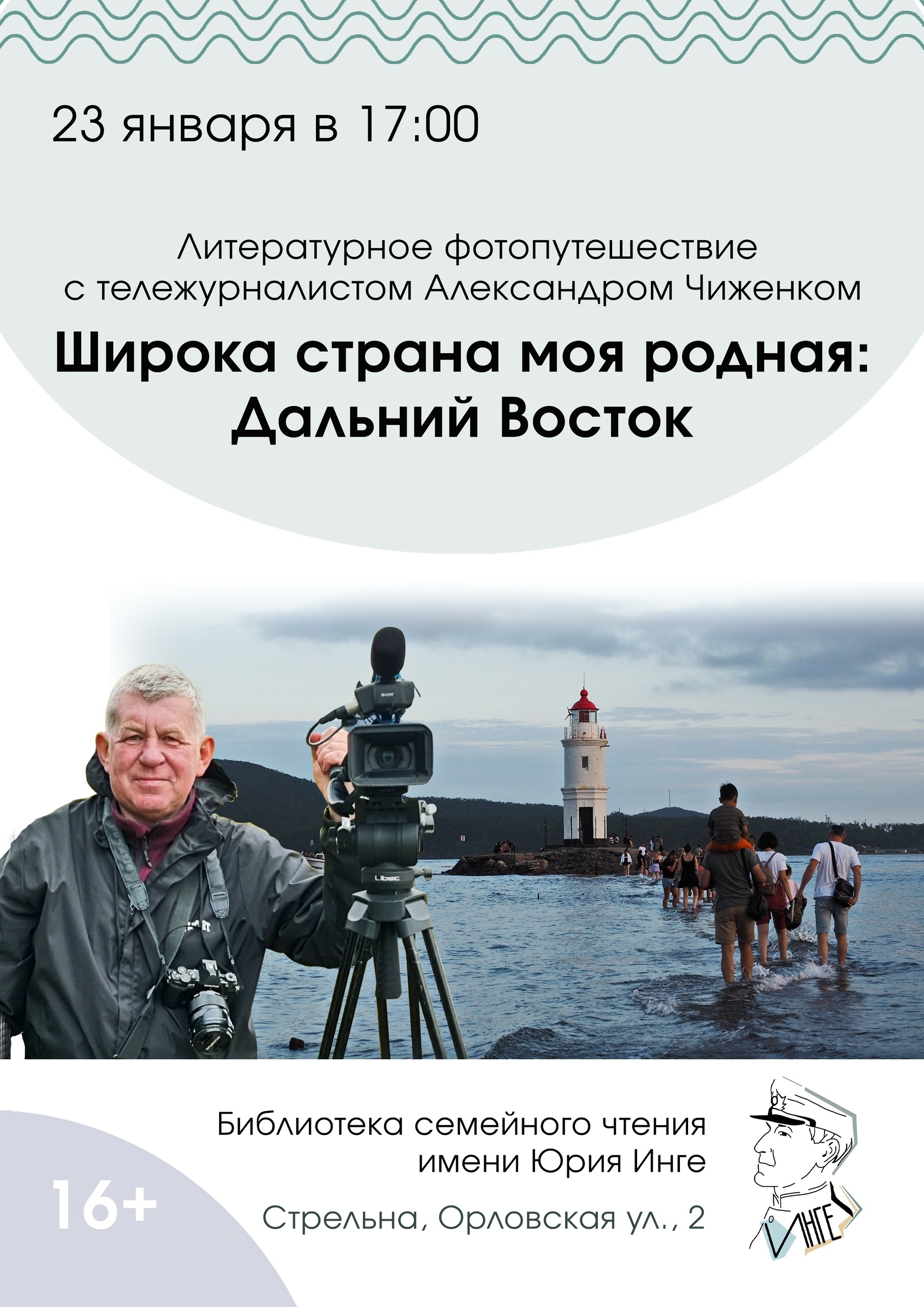 В пятницу, 23 января, в библиотеке семейного чтения имени Юрия Инге гостей ждёт литературное фотопутешествие с Александром Чиженком. Вместе с тележурналистом удастся проехать по маршруту от Владивостока через Хабаровск, Комсомольск, Благовещенск, Биробиджан, Тынду до Северобайкальска, увидеть, как живут евреи в столице Еврейкой автономной области, посетить нанайцев, посмотреть на БАМ и живописные окрестности региона.