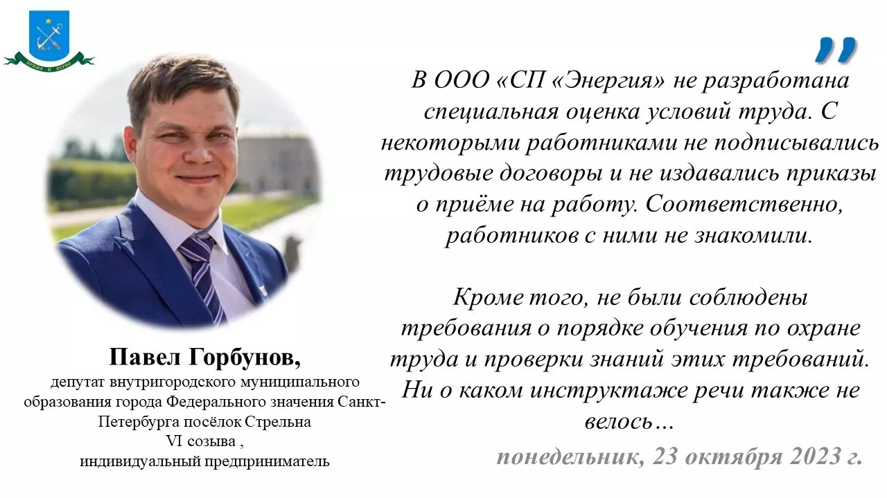 Депутат МО пос. Стрельна Павел Горбунов процитировал материалы ведомства: