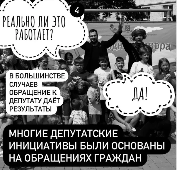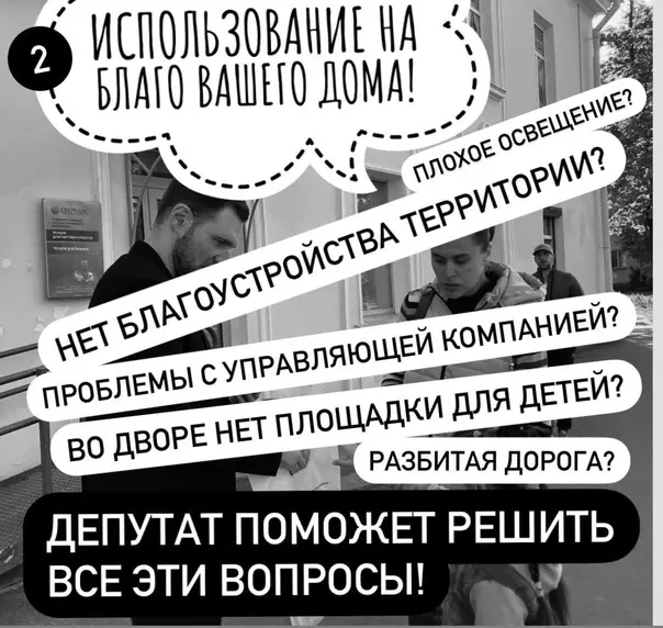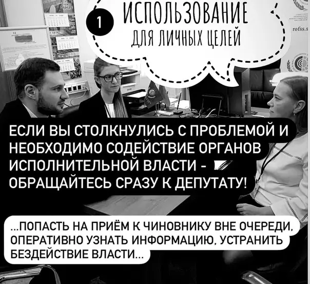 Депутат МО пос. Стрельна Руслан Ермоленко говорит следующее: «У всего есть своя инструкция по применению. В том числе, у депутата! Использование представителей муниципальной власти в личных целях, на благо вашего дома, района и города — всё это более чем реально!»