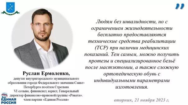 Перечень медицинских показаний и список ТСР прикреплены к этому посту», — разъясняет подробности депутат Руслан Ермоленко.