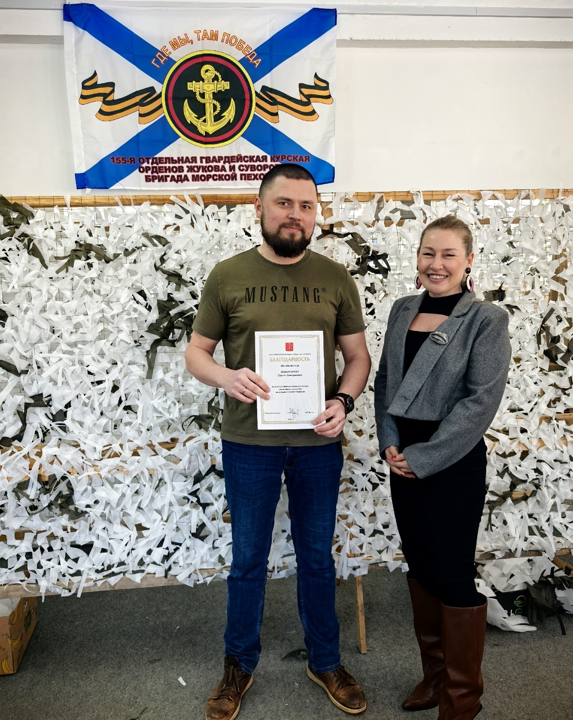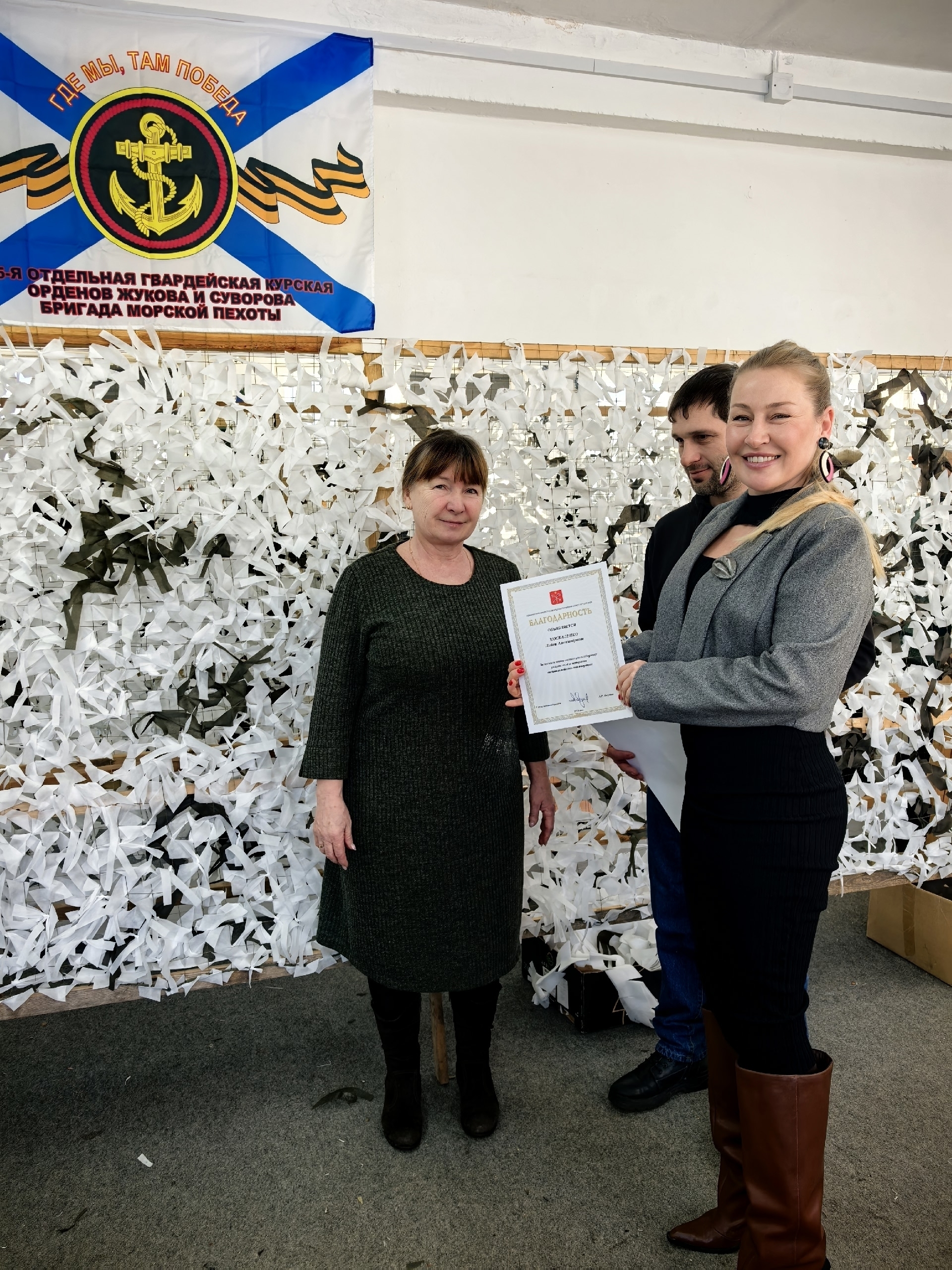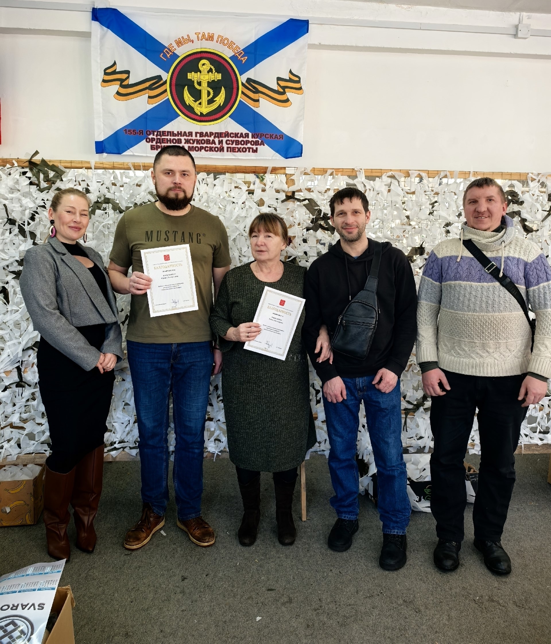 По итогам визита глава района вручил благодарности от администрации Петродворцового района Санкт-Петербурга «За многолетний вклад в поддержку участников и ветеранов специальной военной операции» Лауре Макеевой, Николаю Крюкову, Антону Антонову, Галине Богач, Сергею Пономарёву, Лидии Москаленко.