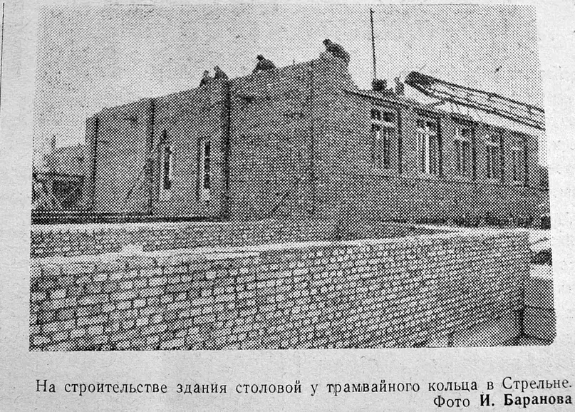 Благодарим группу 5 веков истории Стрельны за фото с заметкой из газеты «Заря Коммунизма» 1961 года: На строительстве здания столовой у трамвайного кольца в Стрельне.