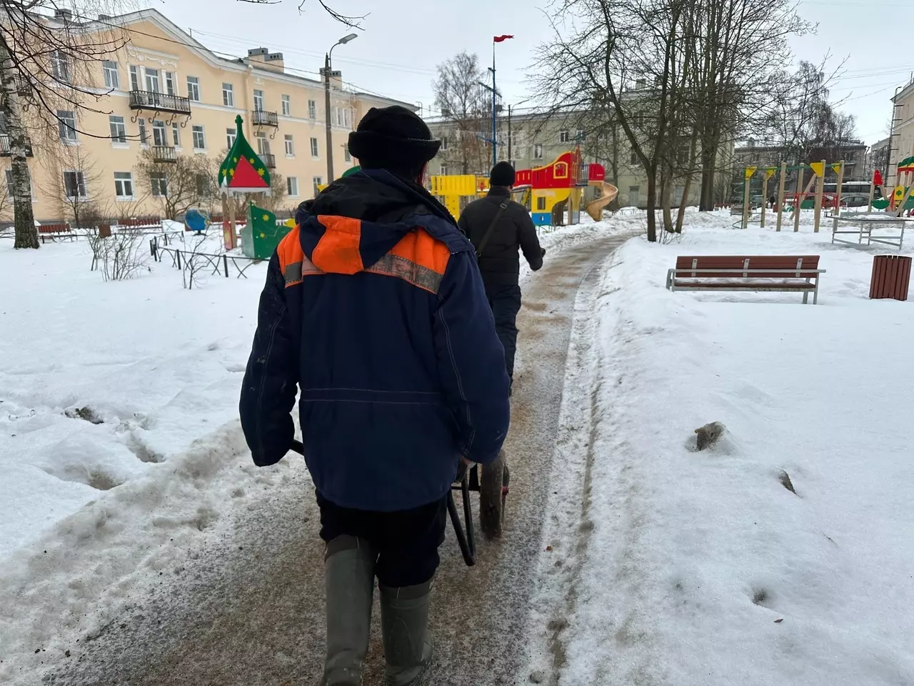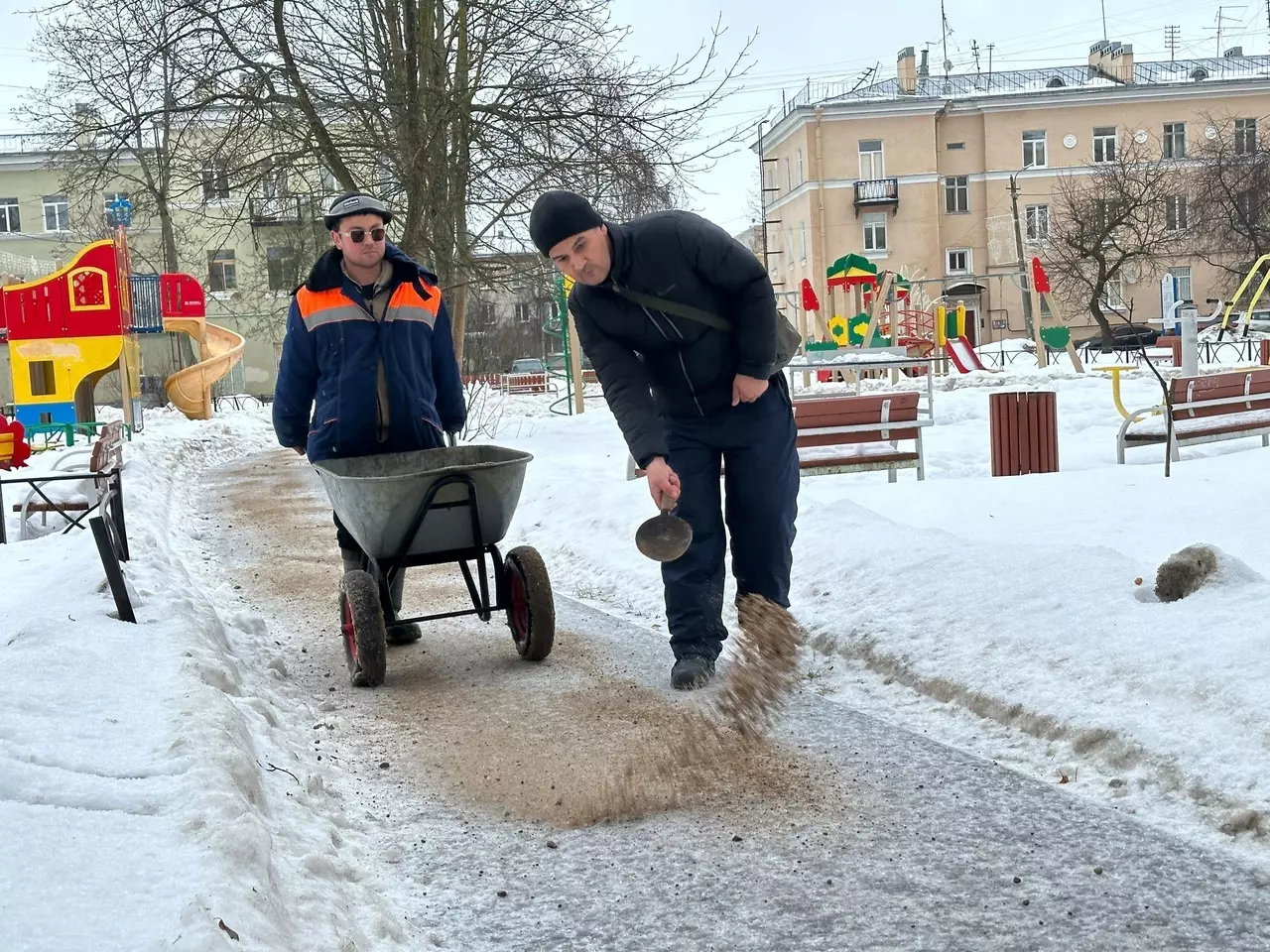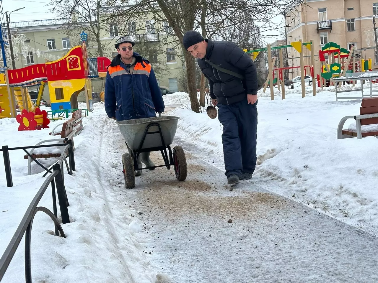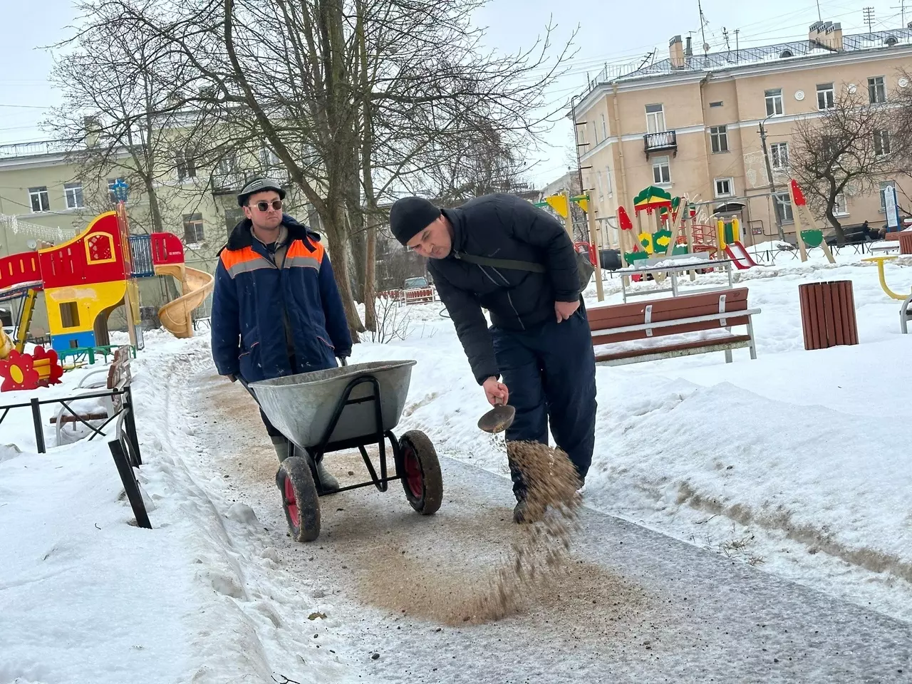 18 декабря сотрудники ООО "Восход" произвели посыпку тротуаров и пешеходных дорожек пескосоляной смесью.