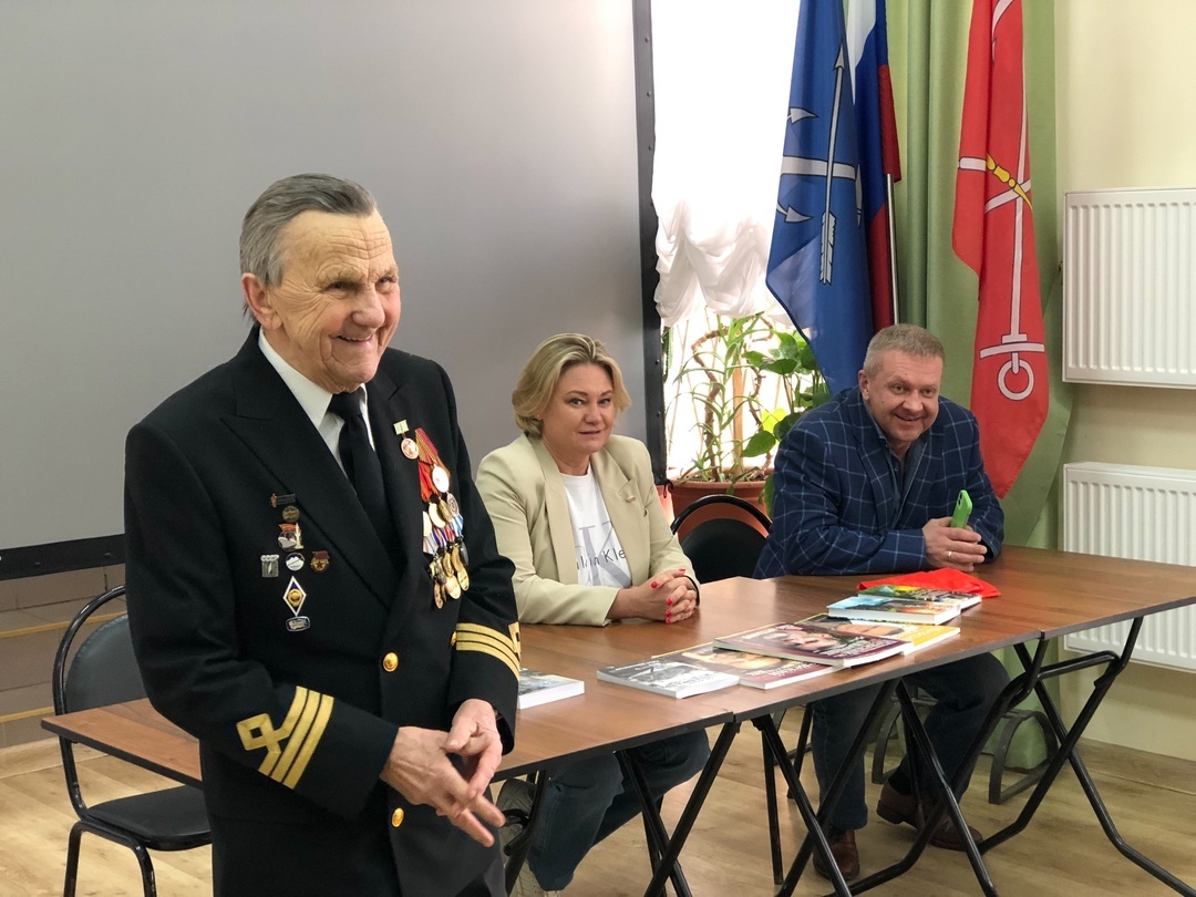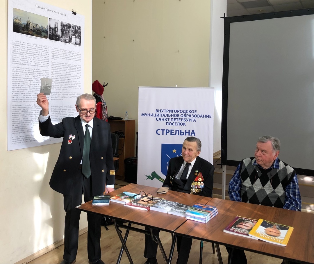 Жизнь и произведения трёх авторов связаны с морем, флотом, радиотехникой и военной тематикой. Встречи с ними пользуются популярностью у жителей Стрельны, особенно в Год защитника Отечества, на этот раз беседа была посвящена грядущему Юбилею Победы.