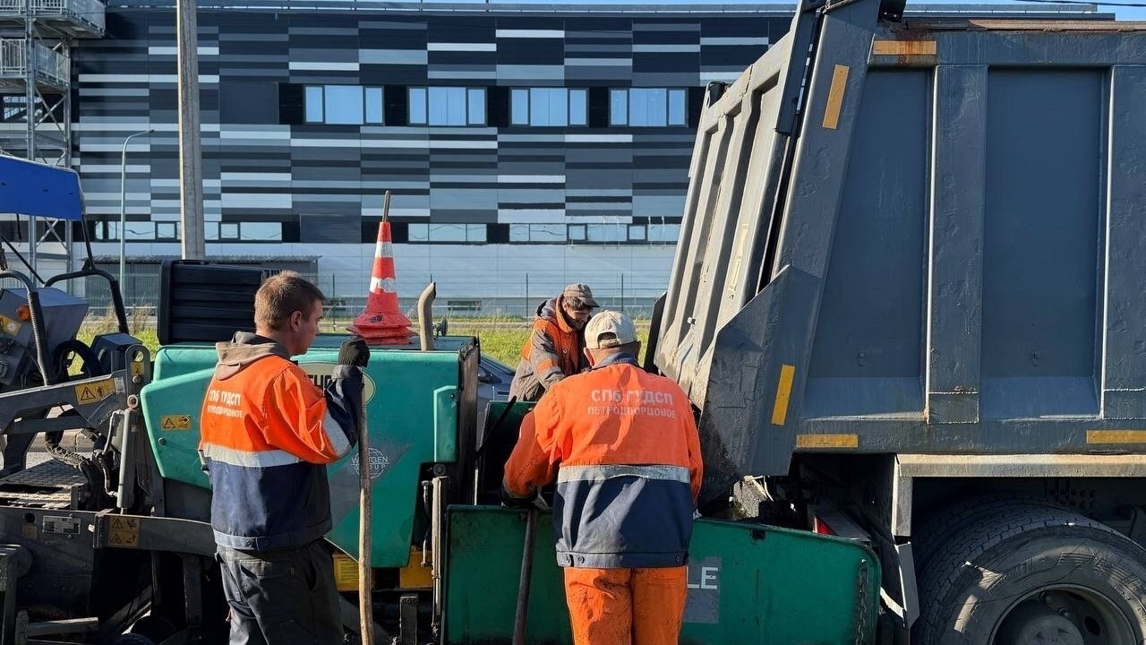 Комитет по благоустройству Санкт-Петербурга делится фотографиями по укладке нового асфальта на улице Кирпичной в поселке Стрельна.