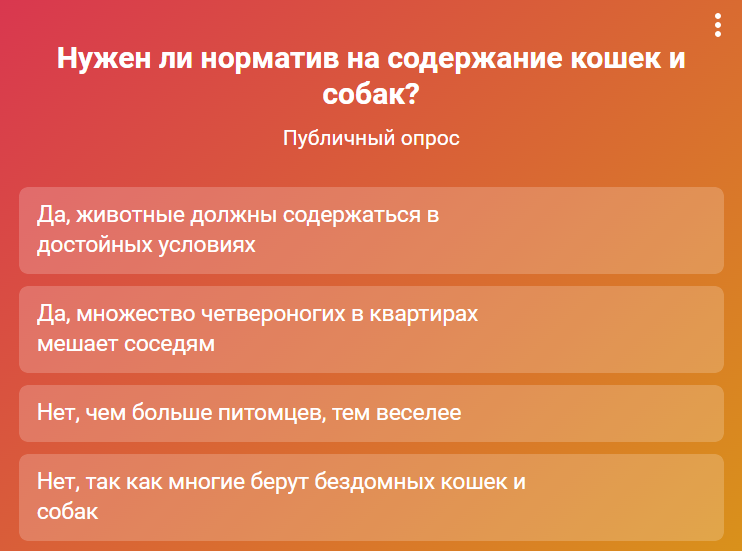 Предлагается разрешить проживание не более одной взрослой собаки и не более одной взрослой кошки на каждые 18 кв. м квартиры.