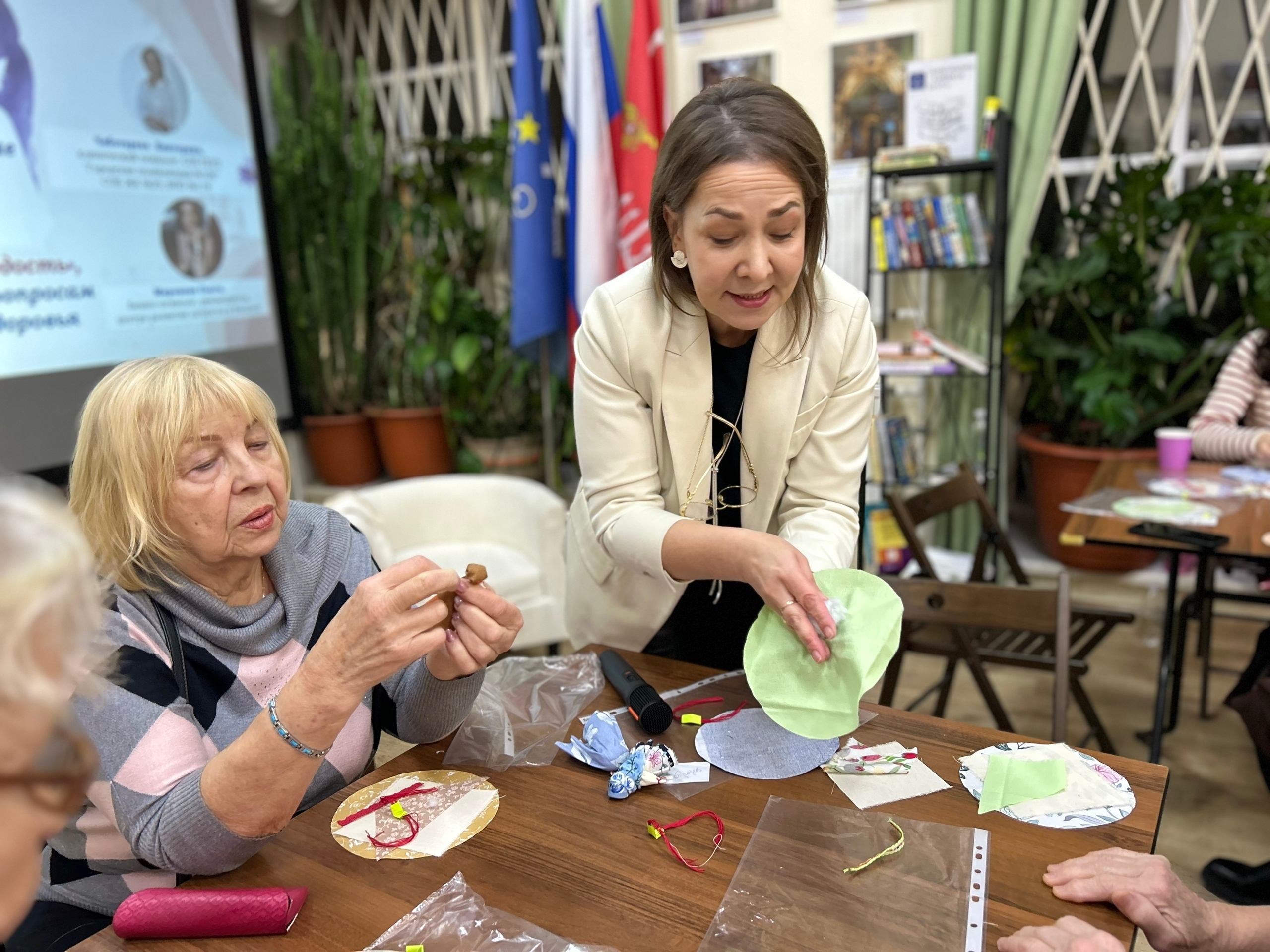 Важной частью встречи стал арт-терапевтический мастер-класс. Каждая женщина под руководством клинического психолога Екатерины Чеботарёвой создала куклу-оберег.
