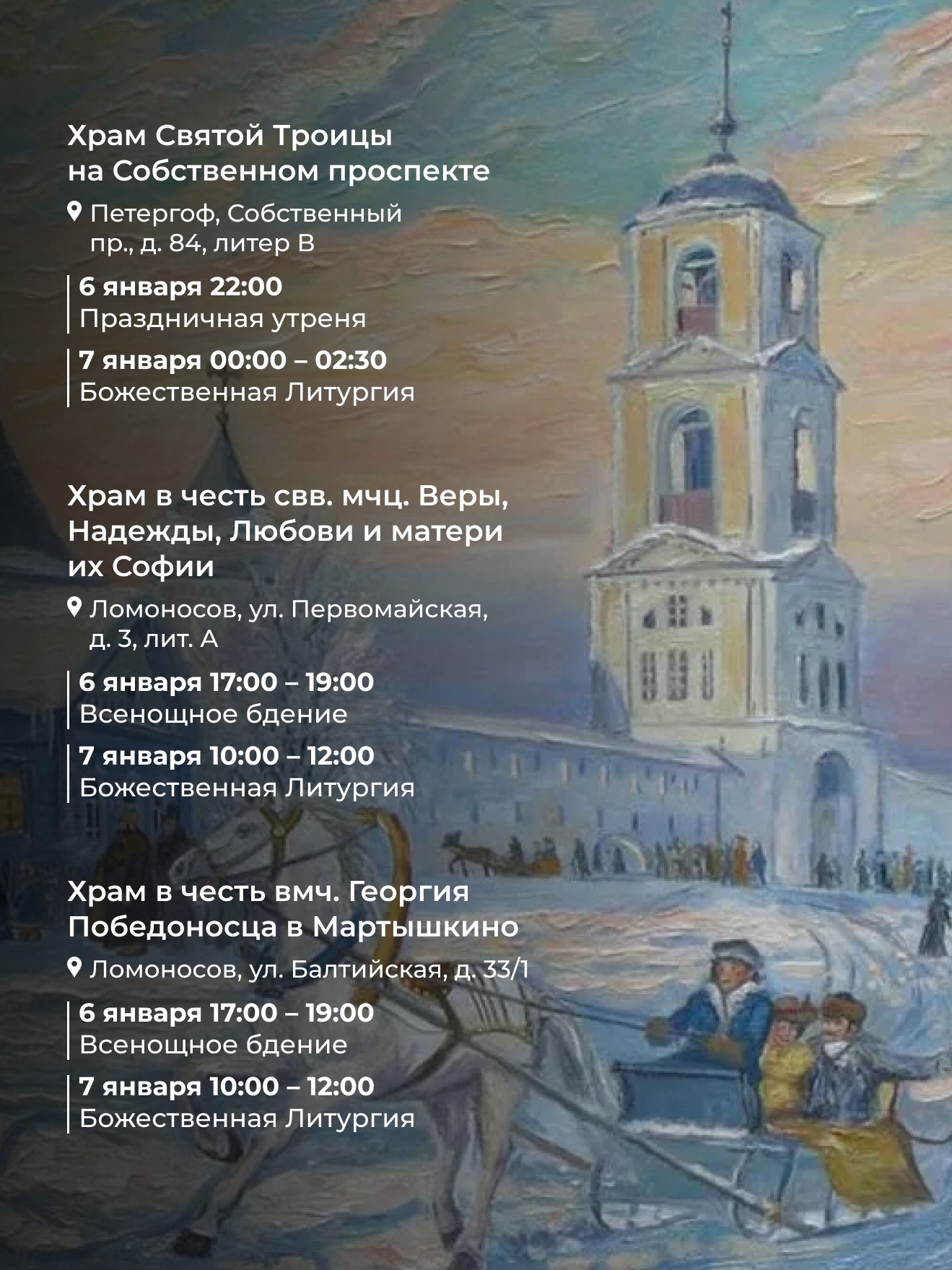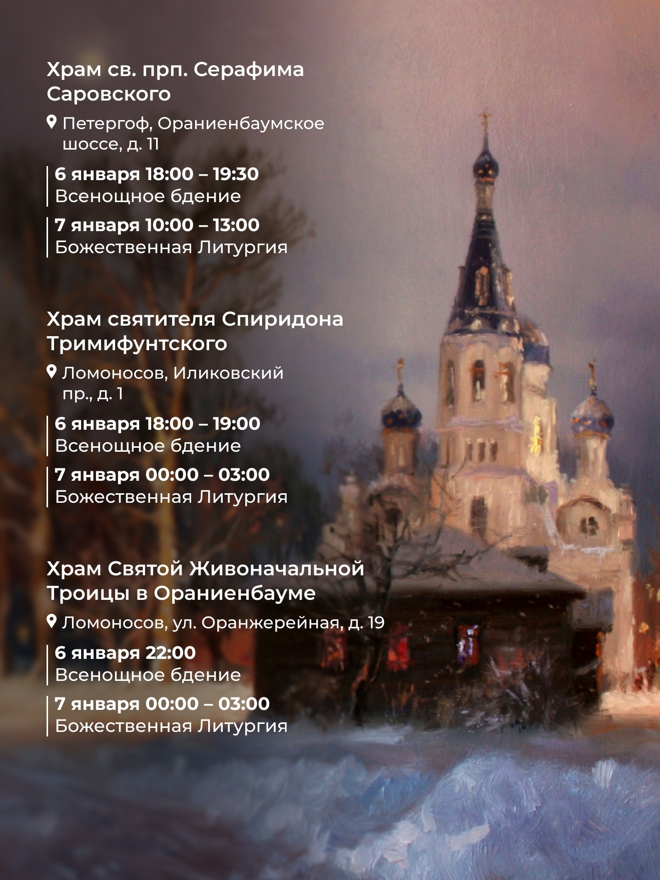 Друзья, приближается светлый праздник — Рождество Христово! Делюсь с вами расписанием праздничных служб в храмах района.