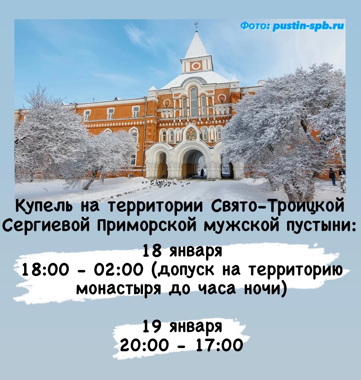 На Крещение Господне в Стрельне можно будет окунуться в специально подготовленную и безопасную купель на территории Свято-Троицкой Сергиевой Приморской мужской пустыни.