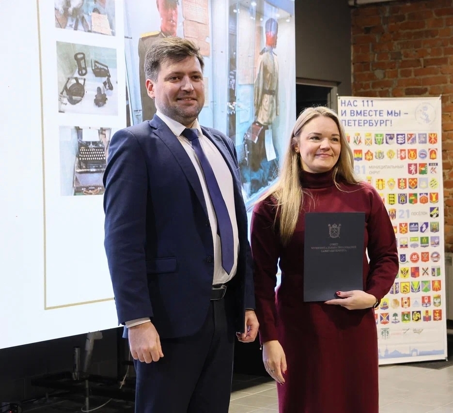 Выставка «Рубежи памяти Стрельны» заняла второе место в номинации: «За лучший музей (комнату) боевой славы, созданный в муниципальном образовании». Диплом вручили заместителю директора МКУ «Стрельна» Ксении Пушковой.